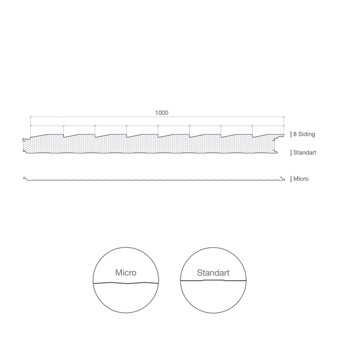 | 40 – 50 – 60 – 80 – 100 mm | PUR 38-40 (±2) kg/m3 PIR 38-42 (±2) kg/m3 |